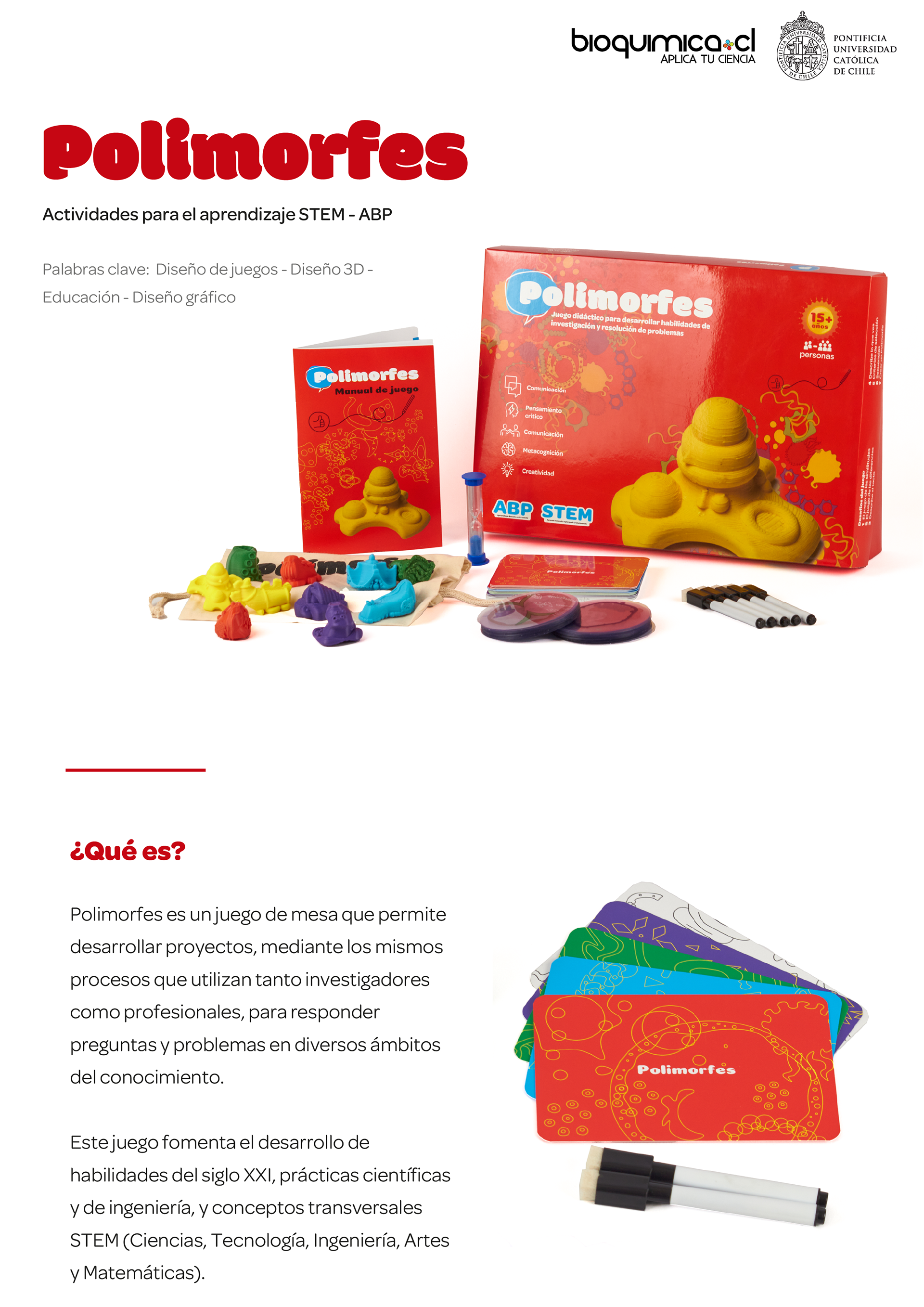 Diseño de kit educativo para el desarrollo de habilidades de investigación, creado en conjunto a Pontificia Universidad Católica de Chile y editorial Bioquímica.